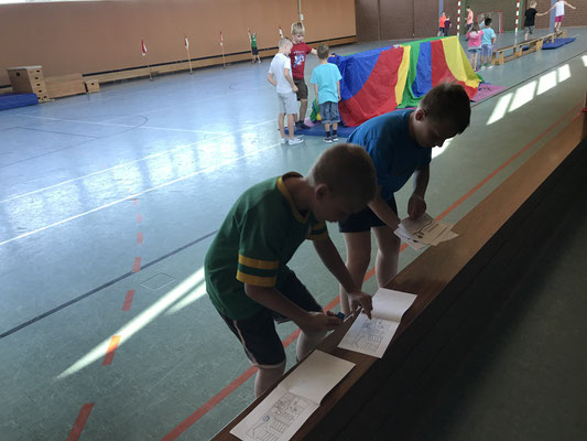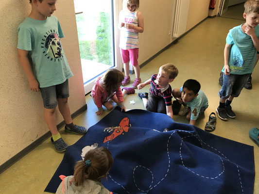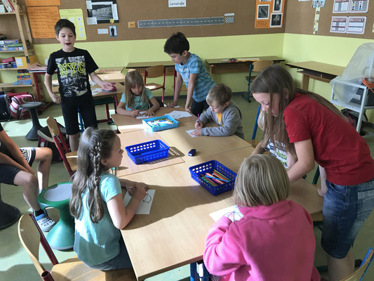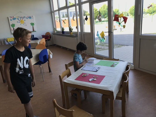 Dazu wurden die Kinder in verschiedene Gruppen eingeteilt. Unter der Betreuung unserer Viertklässler durchliefen sie insgesamt sieben Stationen im Schulgebäude, um alles vorab schon einmal zu