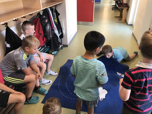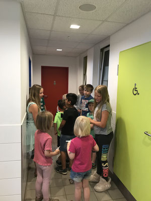 erkunden. Sie durften Frau Hausner viele Fragen stellen, das Sekretariat und Frau Möhlmann sowie Klassenräume, die Mensa, die Sporthalle, die Garderoben und die Toiletten kennenlernen. Nach einem